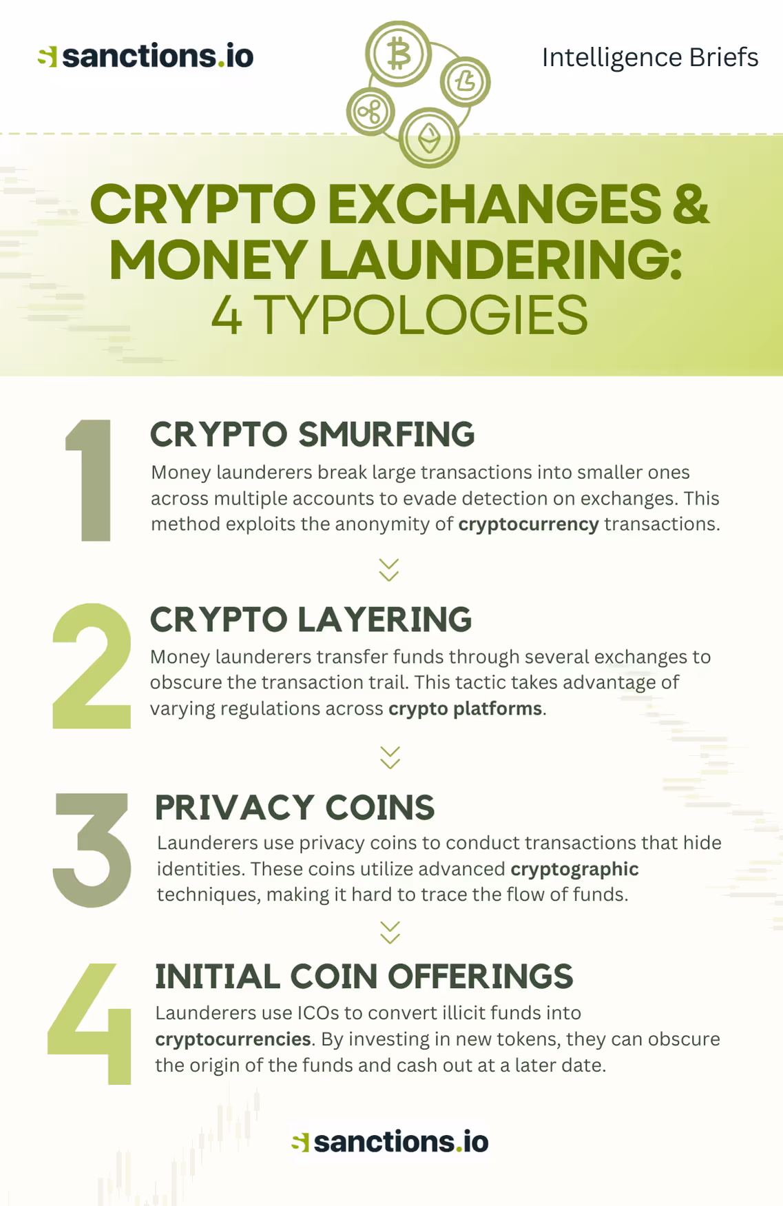 Criminals exploit non-compliant crypto exchanges in a variety of ways to launder money. Here are the top methods used: