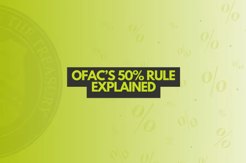 The OFAC 50 Percent Rule is a regulation to address situations where sanctioned entities attempt to evade sanctions by hiding behind complex ownership structures. An entity is considered blocked (subject to sanctions) if it is directly or indirectly owned, in the aggregate, by one or more blocked persons holding 50% or more of the ownership stake. This blog covers everything you need to know about the OFAC 50 percent rule.
